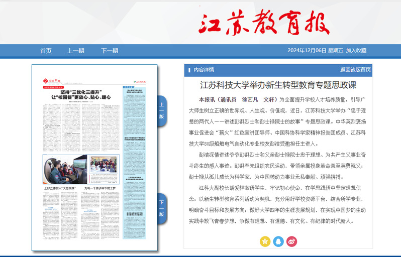 本報訊(通訊員 涂藝凡 文軒)為全面提升學校人才培養質量,引導廣大師生樹立正確的世界觀、人生觀、價值觀,近日,江蘇科技大學舉辦“忠于理想的兩代人——講述彭湃烈士和彭士祿院士的故事”專題思政課。中華英烈褒揚事業促進會“薪火”紅色宣講團導師、中國科協科學家精神報告團成員、江蘇科技大學80級船舶電氣自動化專業校友彭潔受邀擔任主講人。