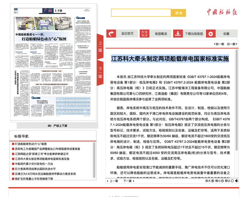 本報(bào)訊 由江蘇科技大學(xué)牽頭制定的兩項(xiàng)國家標(biāo)準(zhǔn)《GB/T 43767.1-2024船載岸電受電設(shè)備 第1部分:低壓岸電箱》和《GB/T 43767.2-2024 船載岸電受電設(shè)備 第2部分:高壓岸電箱(柜)》日前正式實(shí)施。江蘇中智海洋工程裝備有限公司,中國船舶集團(tuán)有限公司第七〇四研究所、江南造船(集團(tuán))有限責(zé)任公司等12家單位歷時(shí)4年,并結(jié)合我國具體情況參與起草了這兩項(xiàng)標(biāo)準(zhǔn)。