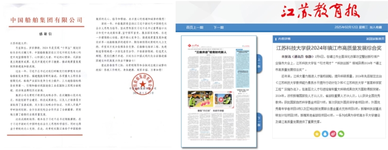2024年學校獲省科技重大專項立項2000萬元,科技副總項目獲批數蟬聯全省第一,產學研合作案例入選省級示范項目,中國船舶集團有限公司向我校發來感謝信,榮獲2024年鎮江市高質量發展綜合獎,彰顯服務區域發展實效。2024年12月,國家國防科工局十司領導來校調研,充分肯定學校在學科建設、人才培養和科學研究等領域取得的成績。