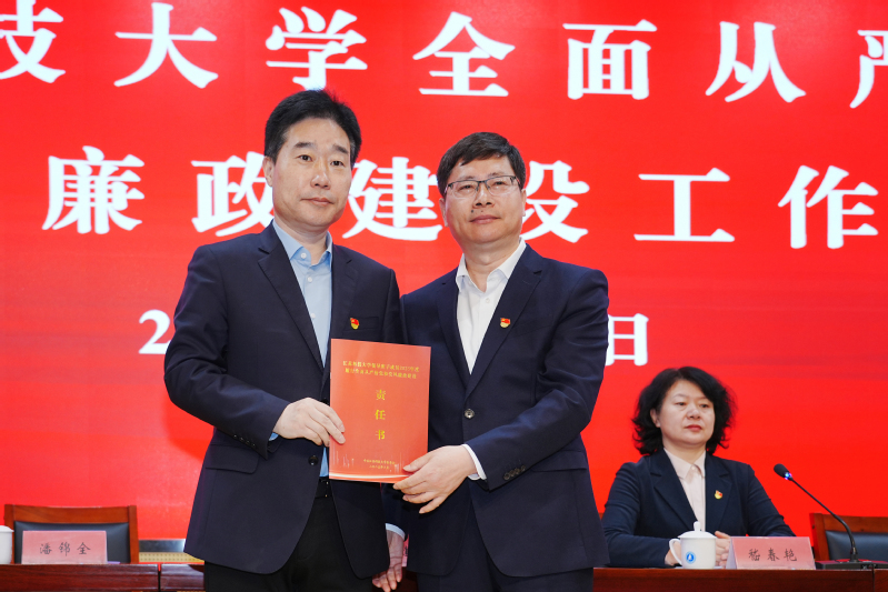 會前,學校黨委常委會會議專題研究全面從嚴治黨和黨風廉政建設工作,研究部署了2025年全面從嚴治黨和黨風廉政建設工作,黨委書記楊建新分別與校領導班子其他成員簽署了“一崗雙責”責任書。