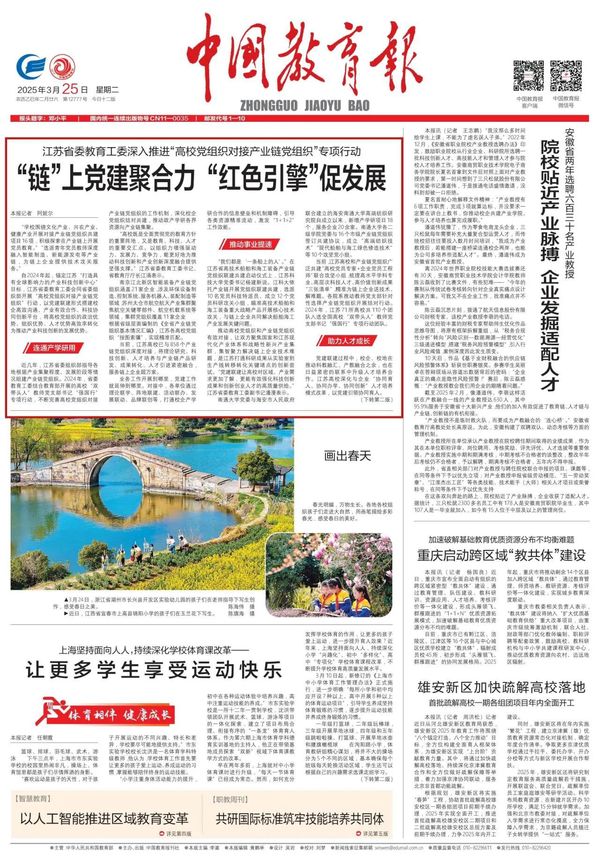 推動高校黨組織和產業鏈黨組織有效對接,讓雙方聚焦國家和江蘇現代化產業體系和戰略性新興產業集群,集智聚力解決鏈上企業技術難題,是江蘇打通科研成果從實驗室到生產線轉移轉化關鍵堵點的創新嘗試。“黨建聯建讓高校對區域、產業需求更加了解,更能有效強化科技創新成果和創新創業人才的高質量供給。”江蘇省委教育工委副書記潘漫表示。