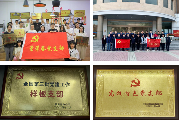 2011年,為傳承發揚景榮春的崇高品格和精神風貌,學校黨委決定以他的名字組建成立黨支部,名為景榮春黨支部,后分成景榮春學生黨支部和景榮春教工黨支部。景榮春學生黨支部先后獲評教育部第三批“全國樣板黨支部”、“江蘇高校特色黨支部”、“江蘇省先進基層黨組織”、“鎮江市五星標桿黨支部”、三次榮獲“江蘇省最佳黨日活動優勝獎”。