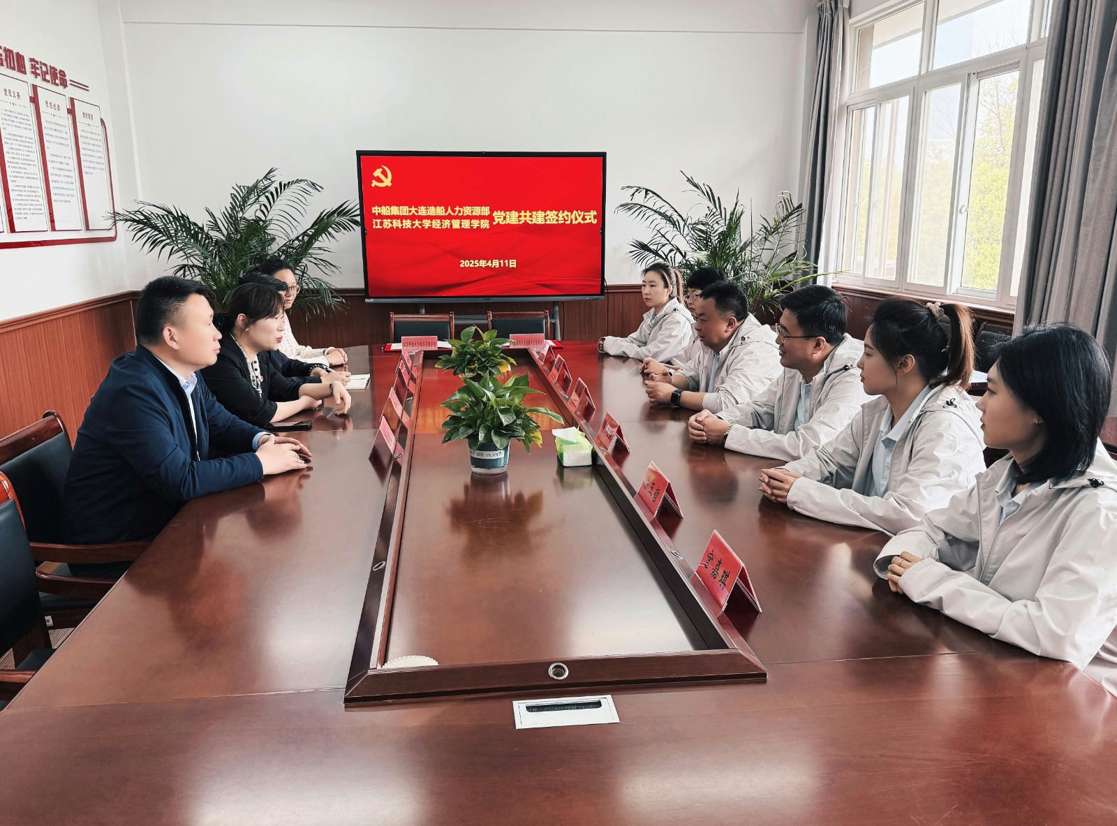 曾嶸與尹潔代表雙方黨組織共同簽署了《黨建共建合作協議》,并就近期合作項目進行了務實對接,明確2025年雙方將重點推進大連造船青年干部培訓、2025屆校園招聘等工作合作。