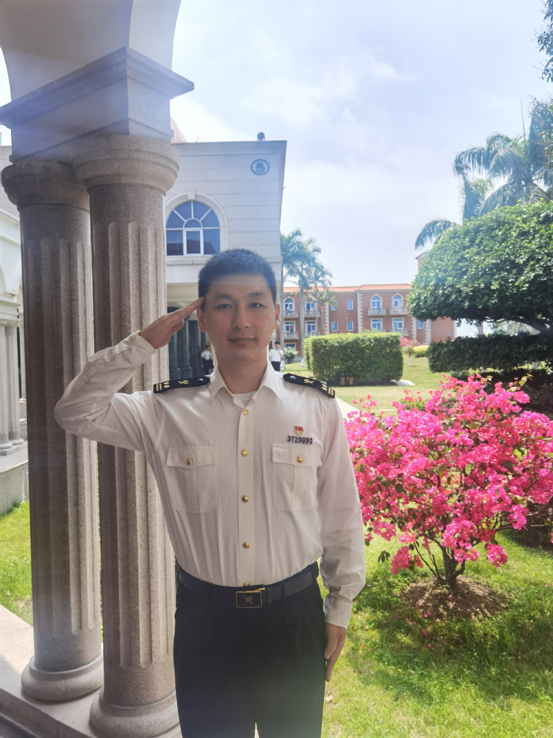 黃興文:2010年,我光榮成為江蘇科技大學(xué)國防生隊(duì)伍的一員,經(jīng)過四年學(xué)習(xí)、訓(xùn)練,我的海軍生涯揚(yáng)帆起航。在部隊(duì)的那些年,我見證了部隊(duì)裝備從“小臘子”獵潛艇到堅(jiān)船利艦的發(fā)展,有幸參加了第一艘航母的學(xué)習(xí)體驗(yàn),深感大國重器的強(qiáng)大,堅(jiān)定了殺敵必勝的信念和走向深藍(lán)的信心。如今,從海軍白到海關(guān)白,變的是身份,不變的是人民海軍精神永遠(yuǎn)激勵(lì)著我。從守海疆到守國門,變的是職責(zé),不變的是為國為民奉獻(xiàn)的決心。