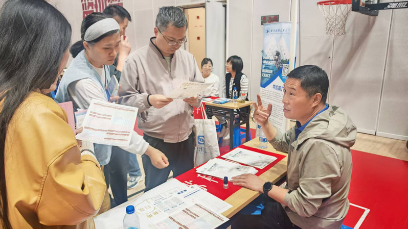 在家長學生分批次咨詢環節,趙長征、楊威兩位老師在展位現場布置了學校的招生簡章、專業介紹展板等資料,圍繞學校招生政策、學科優勢、就業前景等家長關心的熱點問題展開細致解答。針對新高考選考科目要求、志愿填報策略等疑問,兩位老師結合學校優勢和特色專業及人才培養體系,提供了個性化建議,幫助家長和學生更清晰地規劃升學方向。