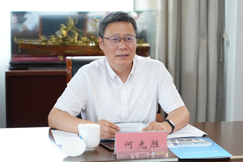 楊建新對何光勝副主任一行的到來表示熱烈歡迎,介紹了學校的辦學特色以及近年來服務國家戰略和地方、行業經濟社會發展所取得的成效。他表示,江蘇科技大學是一所特色鮮明的行業高水平大學,一直以來堅持“船舶、海洋、蠶桑”特色,勇擔“興船報國”使命,積極融入國家海洋強國戰略,主動服務鄉村振興戰略和“一帶一路”高質量發展。近年來,學校深入貫徹落實中央和省委決策部署,主動融入區域、服務產業,堅持做“頂天立地”的科學研究,在服務國家戰略的同時,緊密對接地方產業、行業發展需求,加強校地協同,深化產教融合、科教融匯,探索構建“雙高協同”江科大模式,努力為江蘇勇挑大梁多作貢獻。