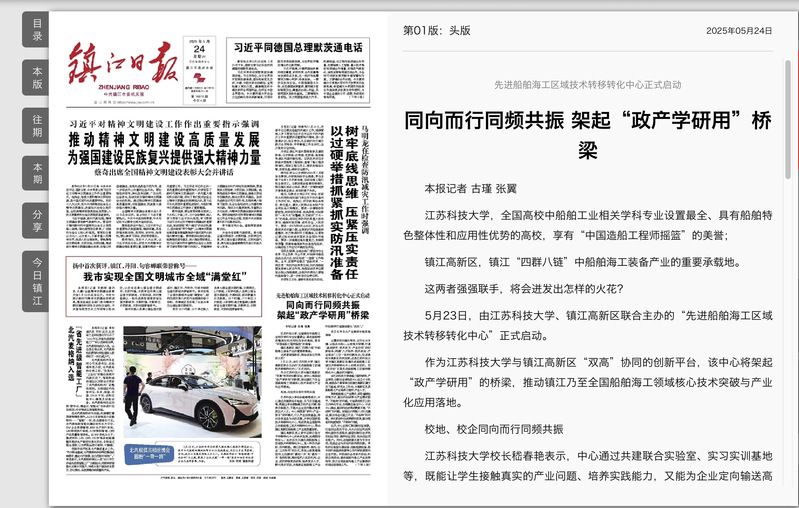 作為江蘇科技大學與鎮江高新區“雙高”協同的創新平臺,該中心將架起“政產學研用”的橋梁,推動鎮江乃至全國船舶海工領域核心技術突破與產業化應用落地。