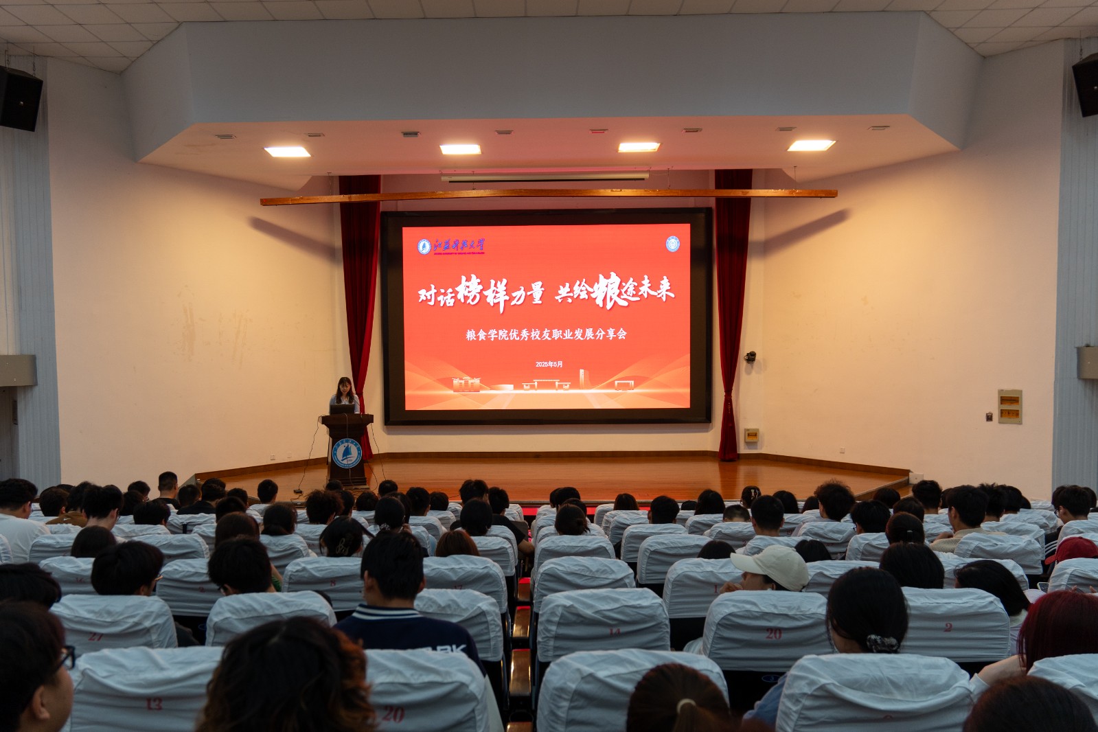 近日,糧食學(xué)院“對話榜樣力量,共繪糧途未來”職業(yè)發(fā)展分享會(huì)在演講廳順利舉行。活動(dòng)邀請五位優(yōu)秀校友分享職業(yè)成長經(jīng)驗(yàn),糧食學(xué)院副院長張曉偉,黨總支副書記喻永光,教師代表,2024級學(xué)生參加。分享會(huì)分為經(jīng)驗(yàn)分享、自由提問、總結(jié)寄語三大環(huán)節(jié),為在校生搭建了與行業(yè)榜樣對話的橋梁。