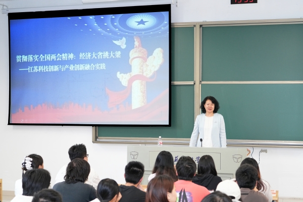 “在時代的浪潮中,經濟大省如何勇挑大梁?在科技創新與產業融合的賽場上,青年學子又該如何乘風破浪?”近日,校黨委書記楊建新走進本科生課堂,以《落實全國兩會精神 經濟大省挑大梁——在推動科技創新和產業融合上打頭陣》為題,將宏大命題轉化為青年話語,與江科大學子展開了一場緊扣時代脈搏、激蕩青春力量的深度對話。課堂上,楊書記以江蘇大地上的生動實踐為底色,勾勒出經濟大省在科技創新與產業融合領域的壯美畫卷。談及船舶行業的發展態勢,他生動地講述了江科大深度參與“大國重器”建造中的硬核實踐,并號召學生們以優秀校友為榜樣,把“國之大者”融入青春理想,在時代的舞臺上綻放屬于自己的光芒。課后,學生們直呼“干貨滿滿”,紛紛表示對專業使命與時代責任有了更為深刻的認知,投身科技報國的決心愈發堅定。