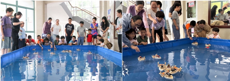 百舸爭流展風采,奮楫爭先向深藍。課堂最后,小朋友們來到水池旁邊進行試水航行,15艘船模整齊排列,蓄勢待發。這場別開生面的船模競賽,不僅讓孩子們體驗到船舶的魅力,更在親子互動中播撒了海洋夢想的種子。