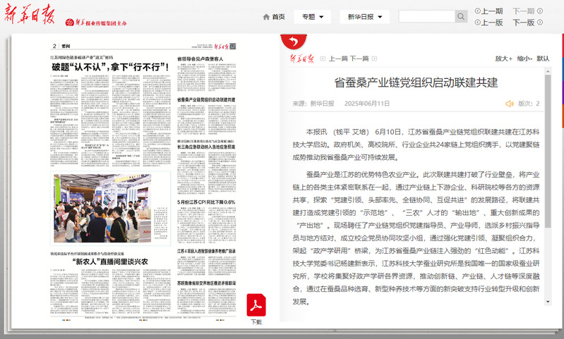 蠶桑產(chǎn)業(yè)是江蘇的優(yōu)勢特色農(nóng)業(yè)產(chǎn)業(yè)。此次聯(lián)建共建打破了行業(yè)壁壘,將產(chǎn)業(yè)鏈上的各類主體緊密聯(lián)系在一起,通過產(chǎn)業(yè)鏈上下游企業(yè)、科研院校等各方的資源共享,探索“黨建引領(lǐng)、頭部率先、全鏈協(xié)同、互促共進(jìn)”的發(fā)展路徑,將聯(lián)建共建打造成黨建引領(lǐng)的“示范地”、“三農(nóng)”人才的“輸出地”、重大創(chuàng)新成果的“產(chǎn)出地”。現(xiàn)場聘任了產(chǎn)業(yè)鏈黨組織黨建指導(dǎo)員、產(chǎn)業(yè)導(dǎo)師,選派鄉(xiāng)村振興指導(dǎo)員與地方結(jié)對、成立校企黨員協(xié)同攻堅小組,通過強(qiáng)化黨建引領(lǐng)、凝聚組織合力,架起“政產(chǎn)學(xué)研用”橋梁,為江蘇省蠶桑產(chǎn)業(yè)鏈注入強(qiáng)勁的“紅色動能”。江蘇科技大學(xué)黨委書記楊建新表示,江蘇科技大學(xué)蠶業(yè)研究所是我國唯一的國家級蠶業(yè)研究所,學(xué)校將集聚好政產(chǎn)學(xué)研各界資源,推動創(chuàng)新鏈、產(chǎn)業(yè)鏈、人才鏈等深度融合,通過在蠶桑品種選育、新型種養(yǎng)技術(shù)等方面的新突破支持行業(yè)轉(zhuǎn)型升級和創(chuàng)新發(fā)展。